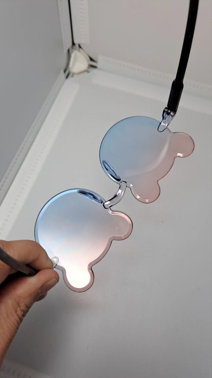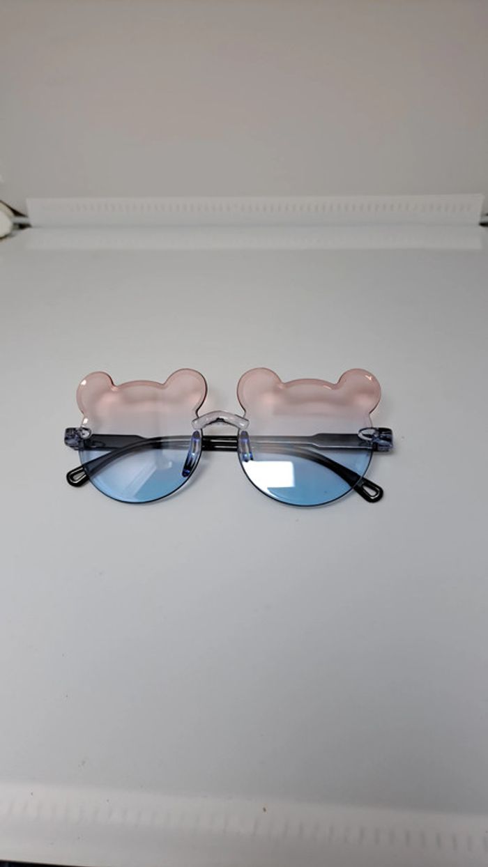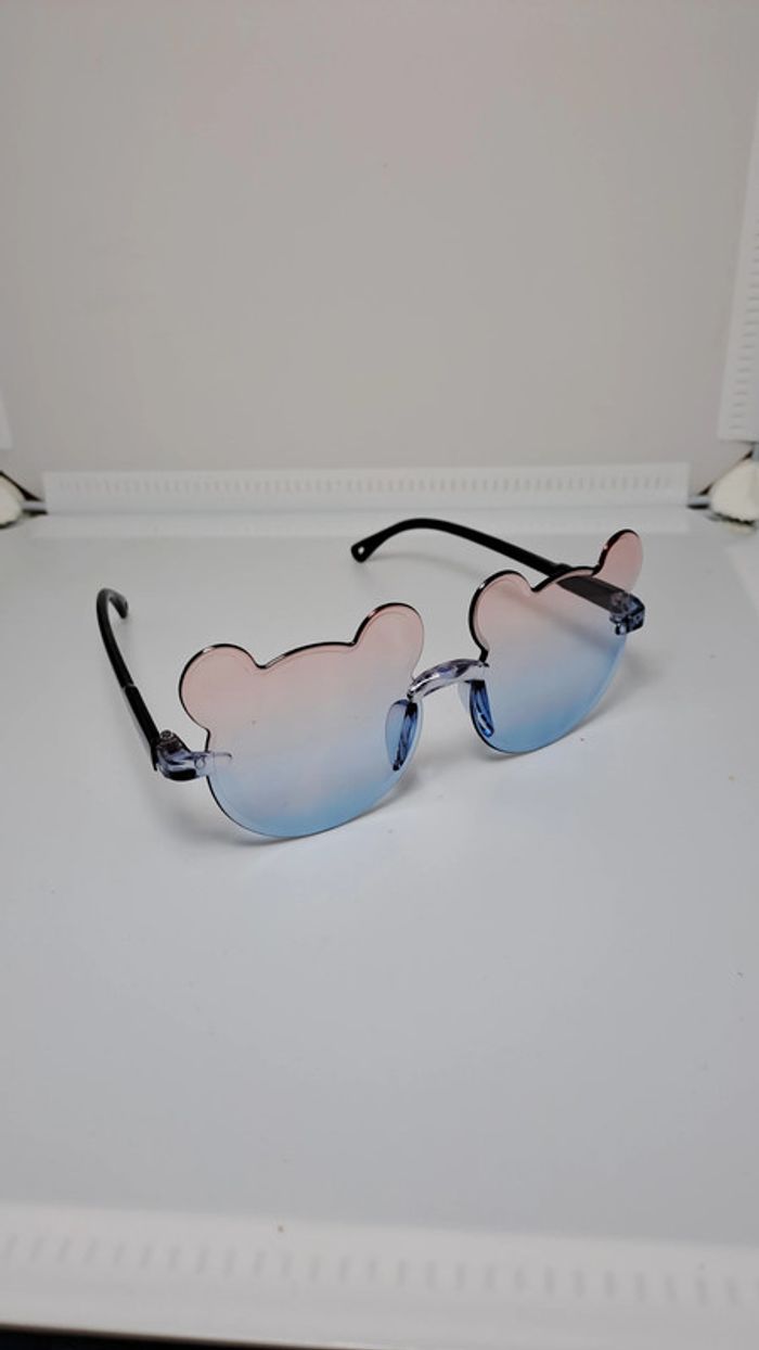 🦚Lunette de soleil enfants en forme d'ourson, verre sur un dégrader de rose et bleu avec les branches de lunette noir. En parfait état. Jamais porté. 🦚Dressing trier par # dans mon " à propos ".