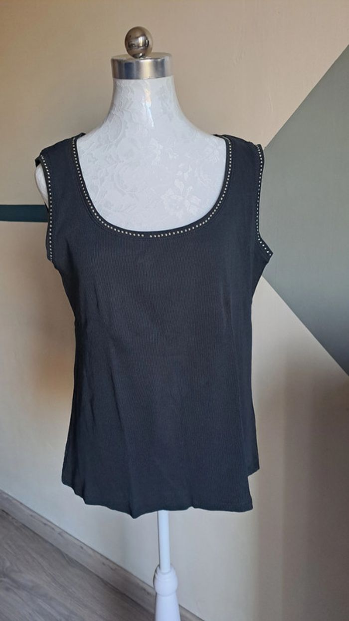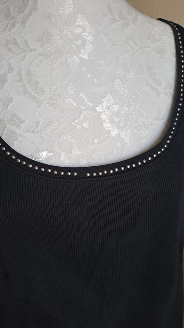 🦚Débardeur femme en bon état, de couleur noir avec strass de couleur argenté. De marque Jacqueline RIU. 📏Bretelles à bretelles : 42cm 📏Aiselles à aiselles : 48cm 📏Longueur : 62cm 🦚Dressing trier par # dans mon " à propos ". #gavelotsT42femme