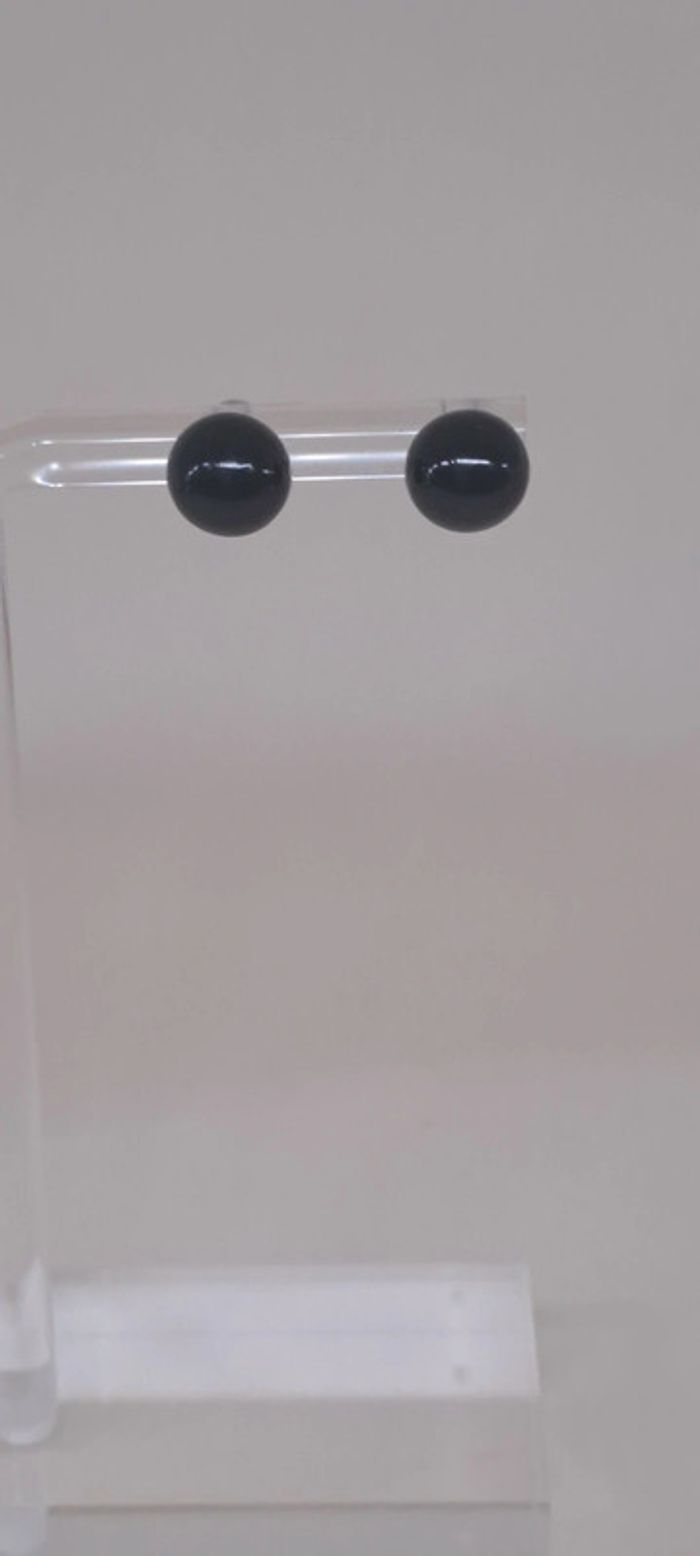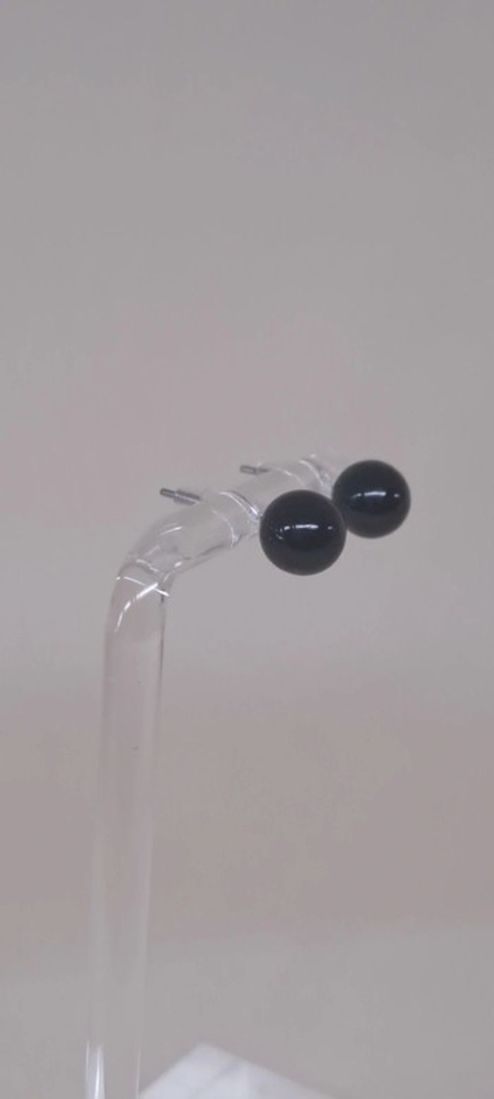 🦚Jolie paire de boucle d'oreilles ronde en fausse perle de couleur noir, tige argenté et attache plastique. 📏Diamètre des boules environ 8mm 🦚Dressing trier par # dans mon " à propos ". #gavelotsbijoux #gavelotsBC