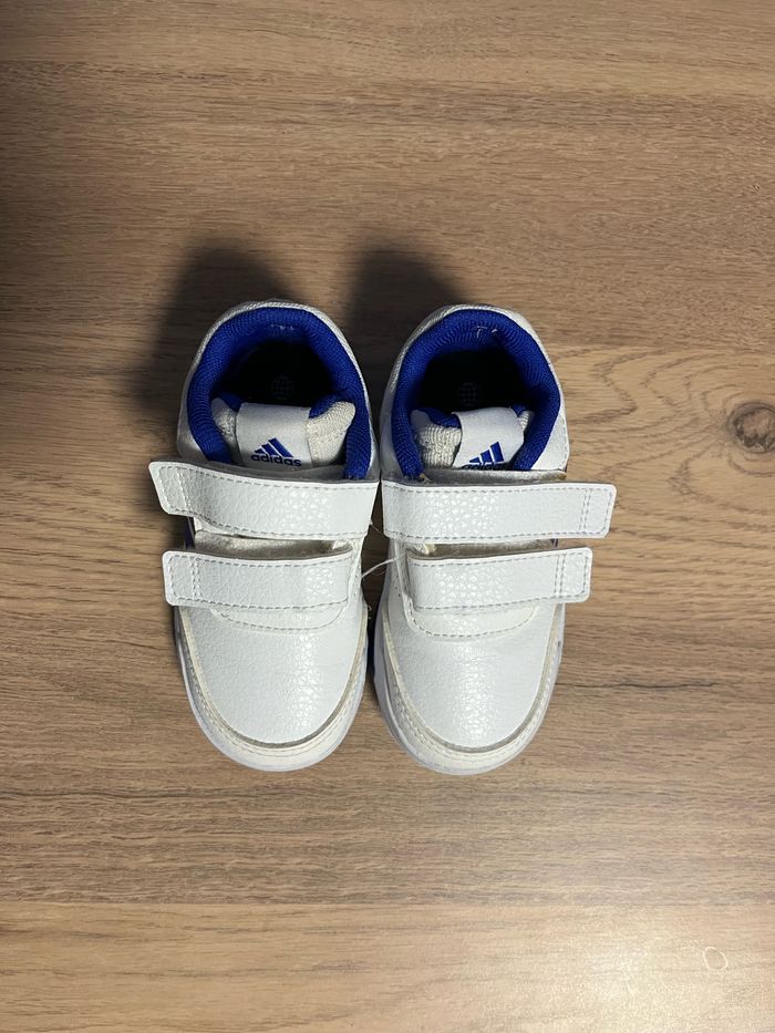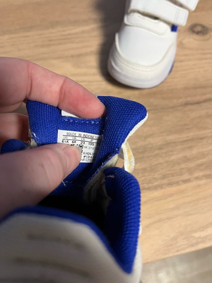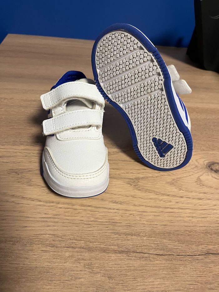 Paires baskets ADIDAS en taille 23, portées quelques fois. Blanche et bleue. En très très bon état
