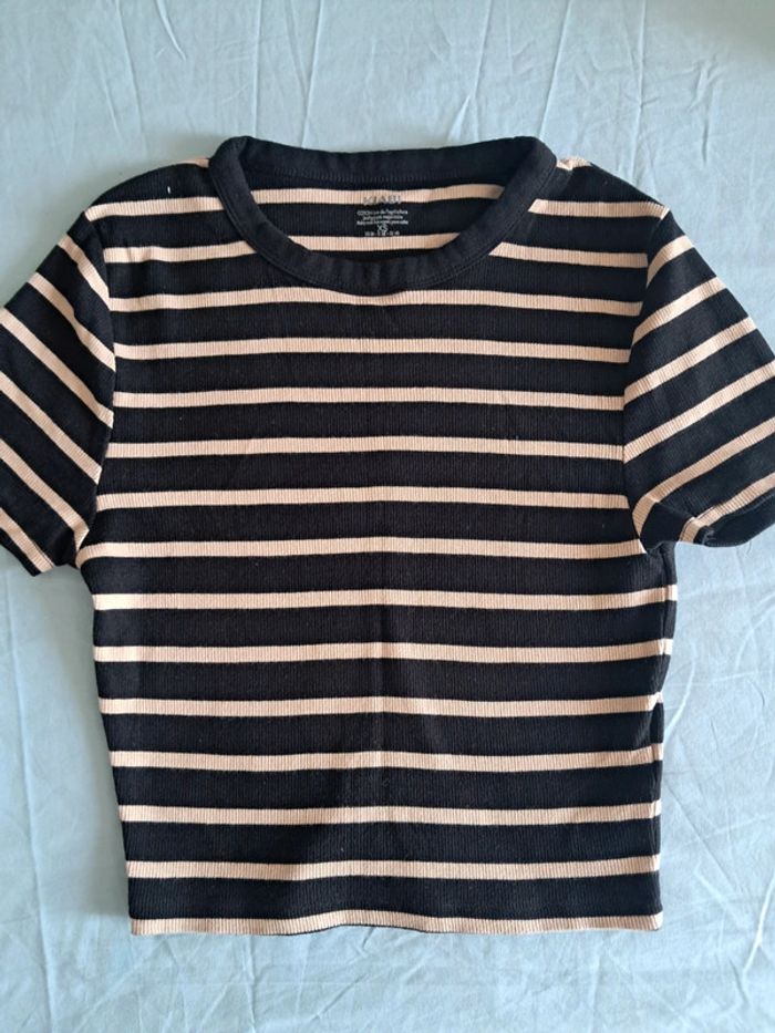 Sweat-shirt court, manches courtes. Taille XS, marque kiabi. Très bon état.