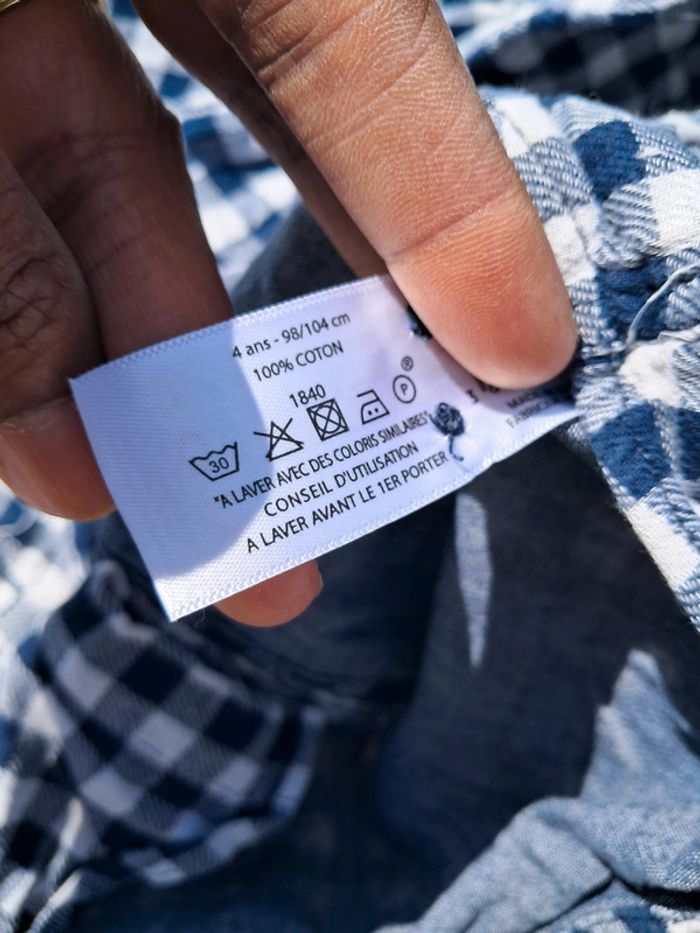 Chemise à manches longues, se ferme avec des boutons. taille 4 ans, marque monoprix, très bon état.