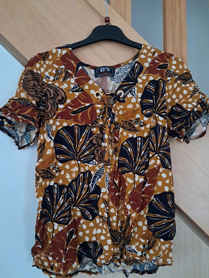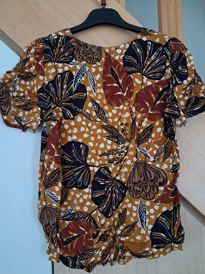 Haut à manches courtes, ample. S'attache avec un noeud devant. Taille unique, très bon état.