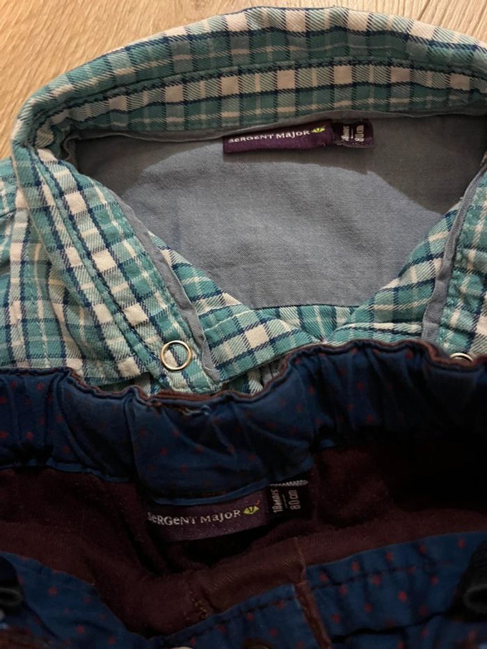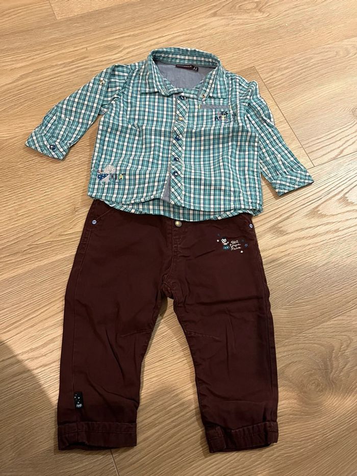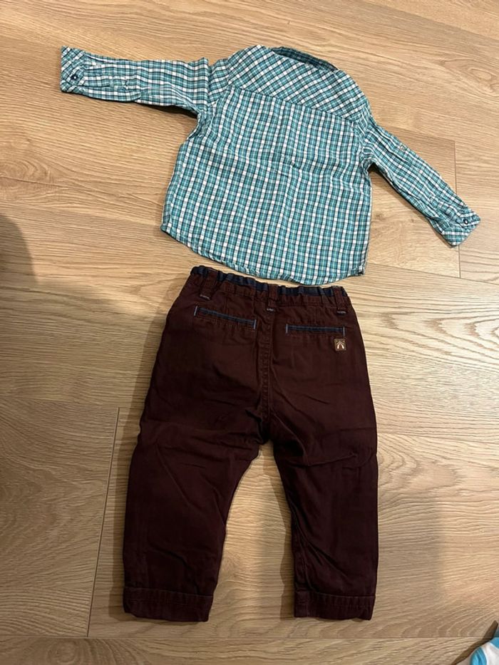 Chemise à carreaux 24 mois et pantalon 18 mois. Très bon état.