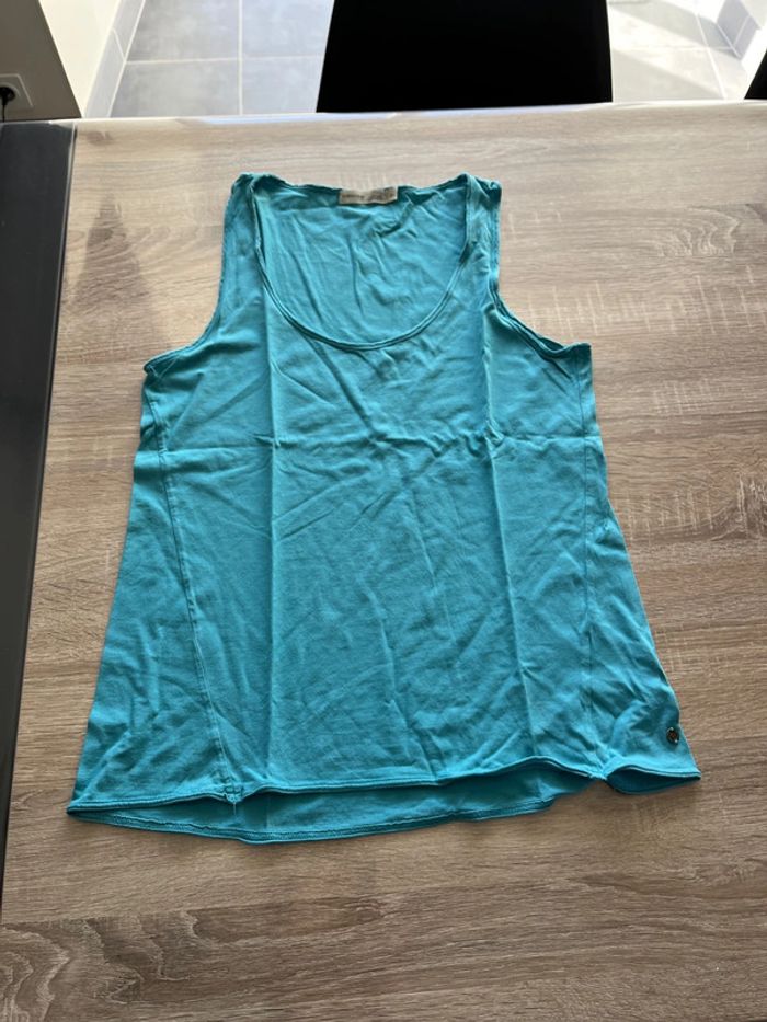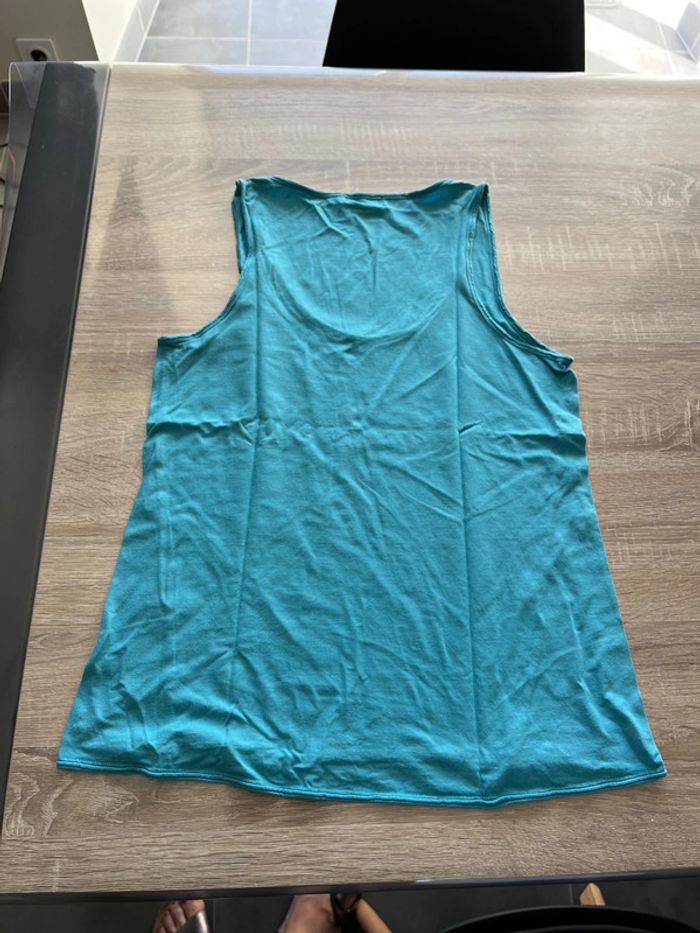 Débardeur bleu, très bon état, petite tache sur le côté.
