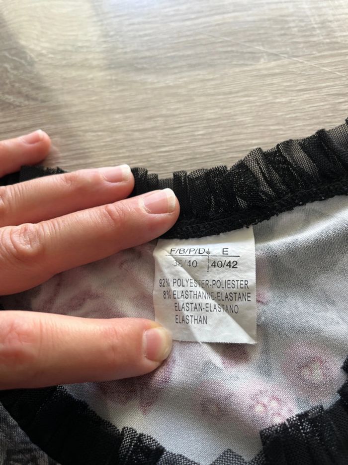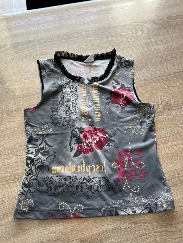Débardeur à motifs, dentelle à l’encolure et petit crochet pour fermer le décolleté