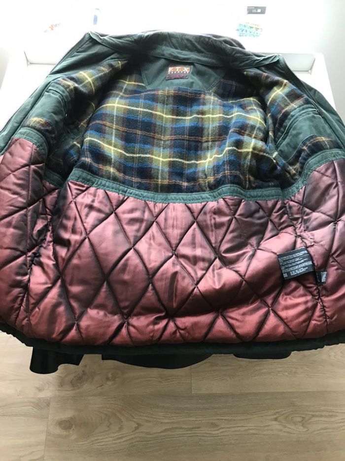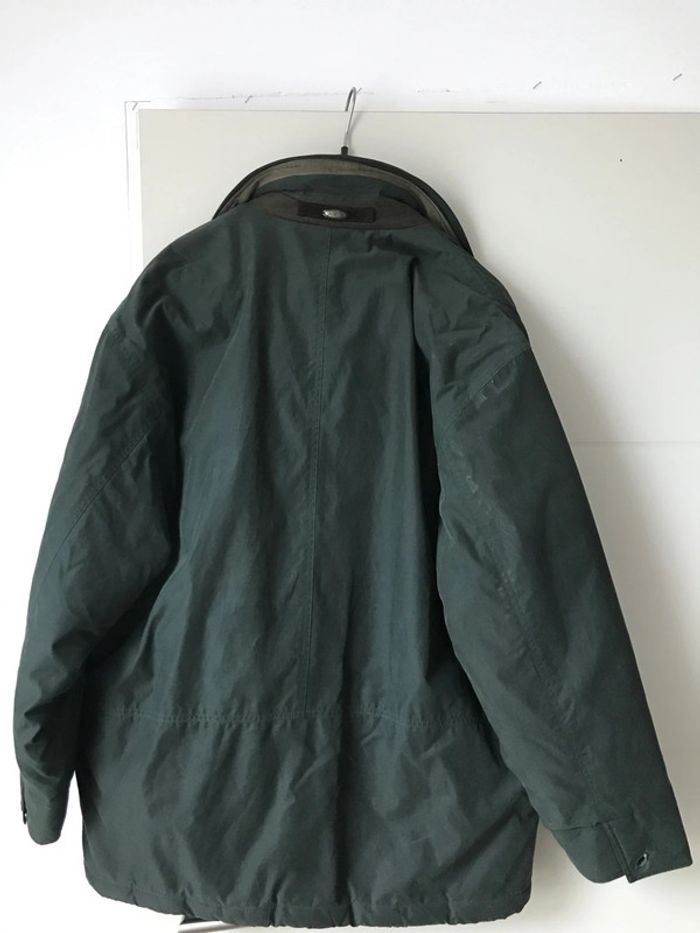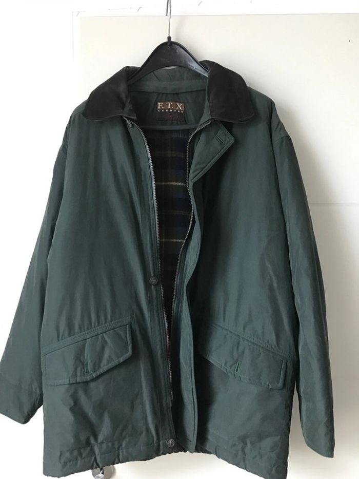 Manteau kaki homme taille 46. Très bon état. Col amovible. Intérieur doublé. Fermeture éclair et boutons. 2 poches devant et 2 poches intérieures