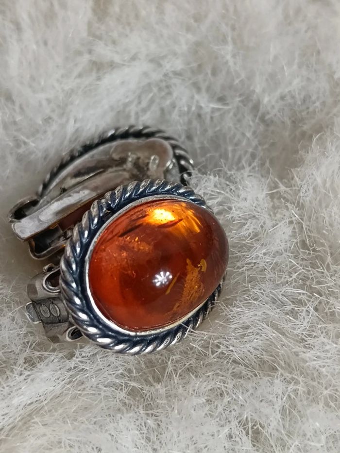 Boucles d'oreilles à clipser | Argent 925 et ambre - photo numéro 1