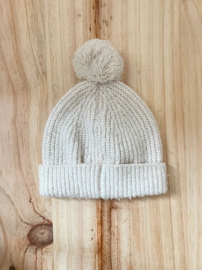 Bonnet en maille perlée à ponpon Marque Zara Taille 1-9 mois 44cm Couleur écru Très bon état