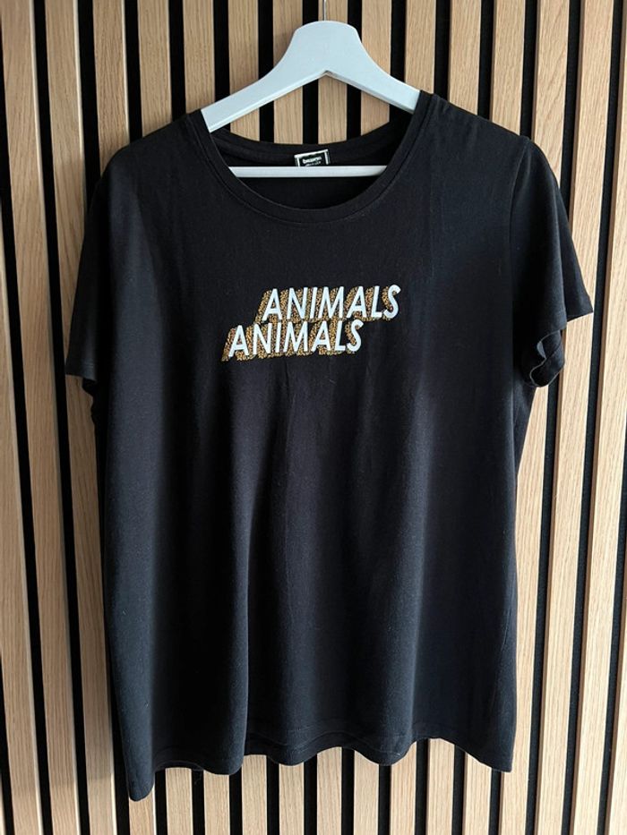 T-shirt basic noir manches courtes Couleur noir avec flocage léopard animals Marque Pimkie Taille L
