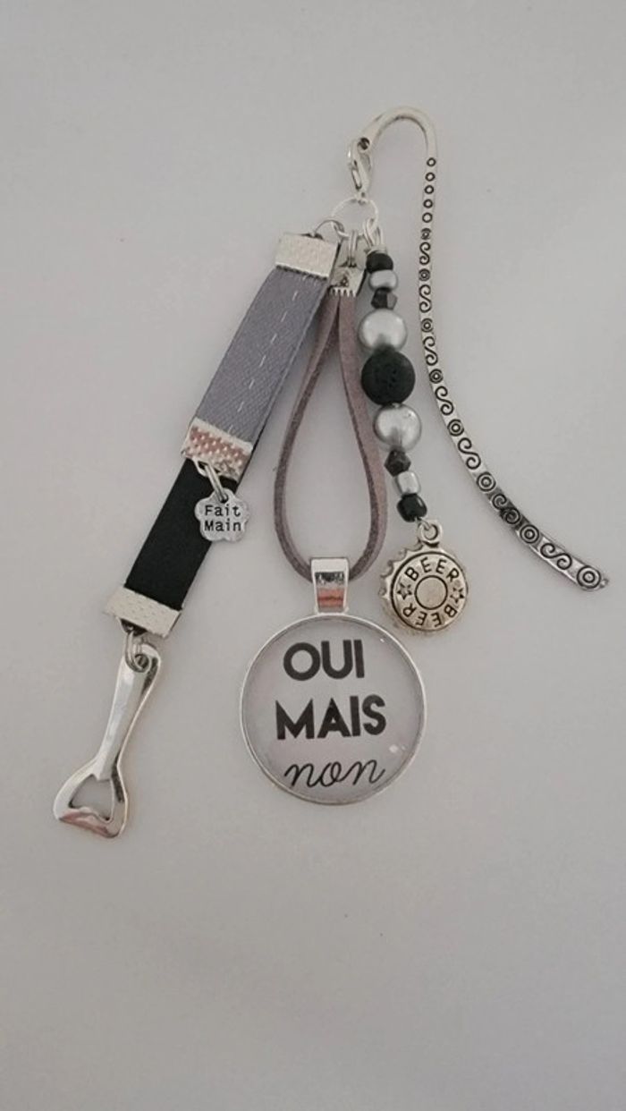 Cadeau humour, bijoux de sac ou marque page de " oui mais non "