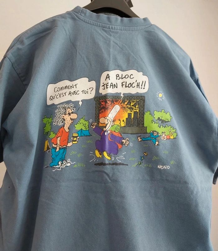Le tee-shirt est en bon état général, l'imprimé n'à pas de defaut mais il y a une légère usure au col (cf dernière photo)