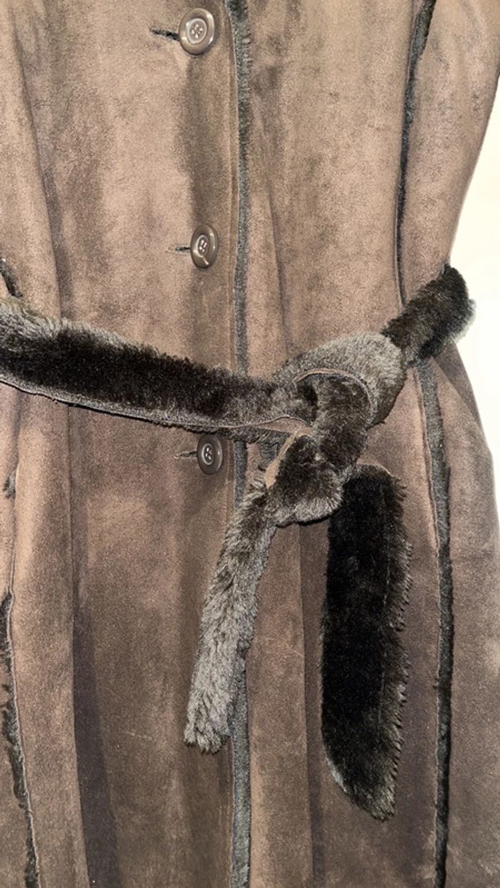 Tres Bon etat tres elegant deux poches latérales à nouer avec ceinture assortie. Les boutons manquent de se décrocher il faudra les renforcer en les recousant. #manteau #manteaufemme #manteauhiver #manteaubrun #manteaudaim #manteauavecceinture #manteauavecpoches #manteauavecpoches36 #manteaux #manteaufaussefourrure #manteaudoux