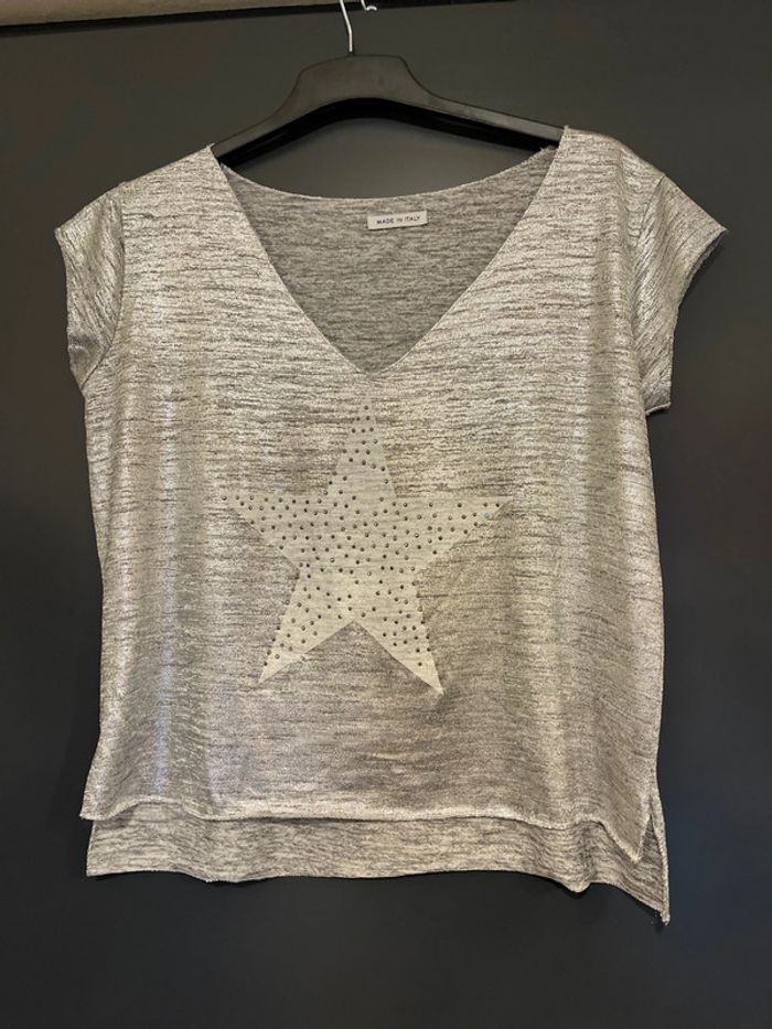 Magnifique teeshirt argenté étoile pour 10 euros seulement - photo numéro 1