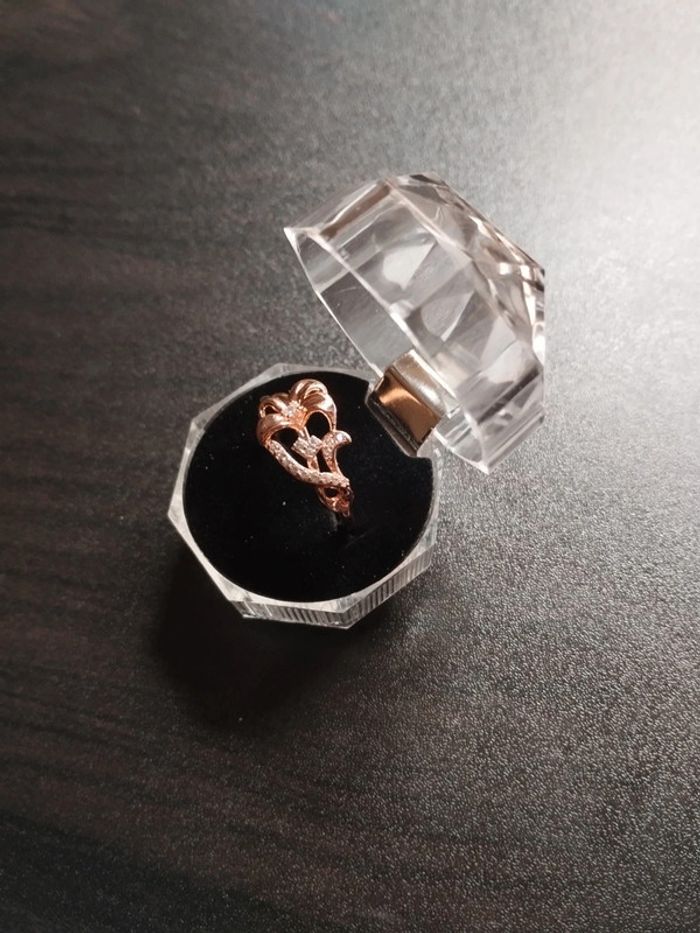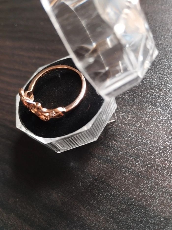 Anneau en plaqué or rose 585/1000e serti de petits zircons blancs taille brillant de 1mm. Taille 61 (20mm) Vendue neuve avec coffret