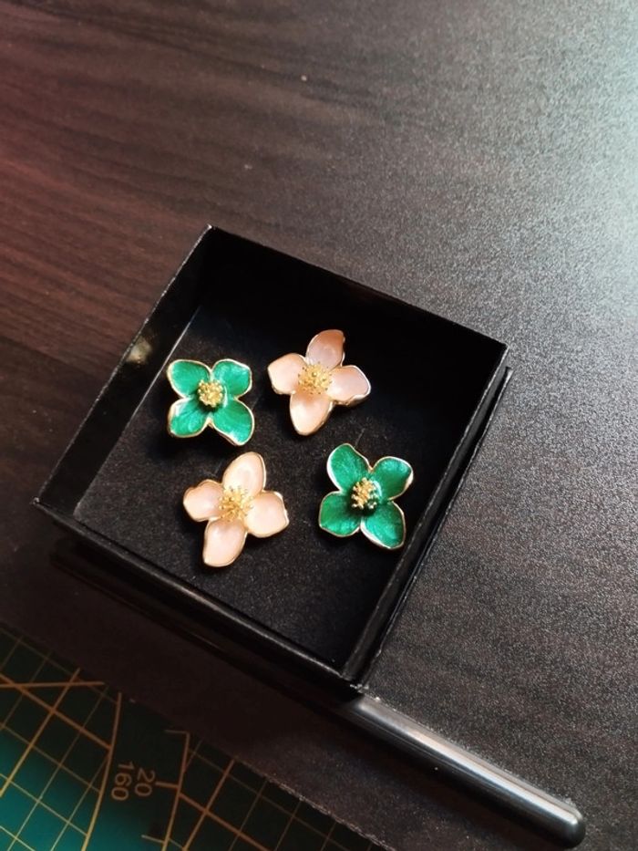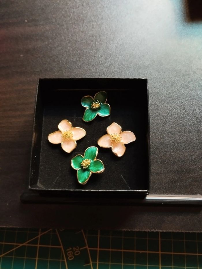 Lot de 2 paires de boucles d'oreilles fleurs avec coffret cadeau - photo numéro 4