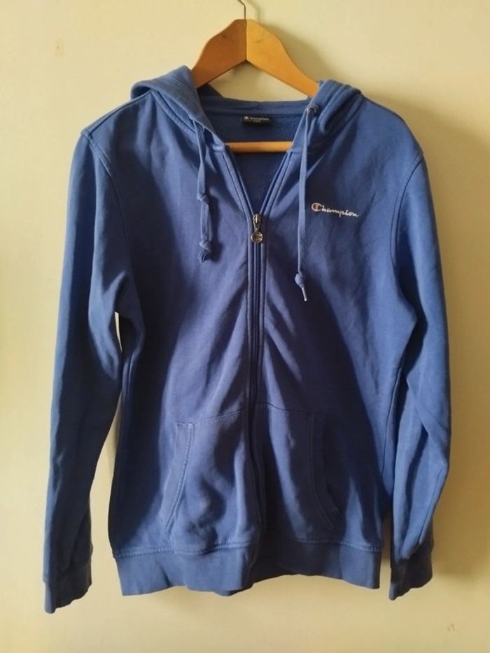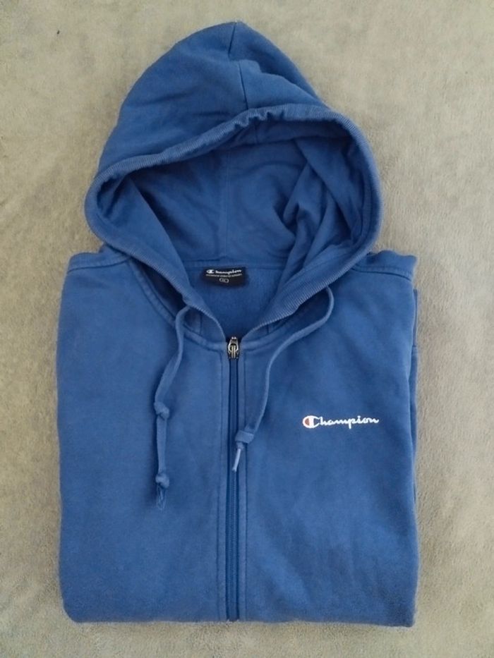 Veste à capuche champion, taille xl (plutôt l) Largeur aux épaules 46 cm, longueur 70. Très bon état