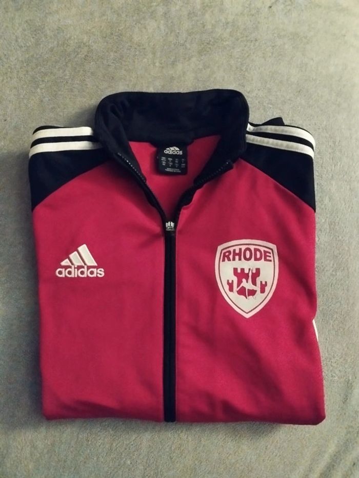 Veste zippée adidas football taille L, largeur aux épaules 44 cm, longueur 76. Très bon état