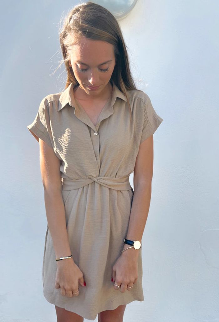 🌟 Robe beige, élastique à la taille - photo numéro 1
