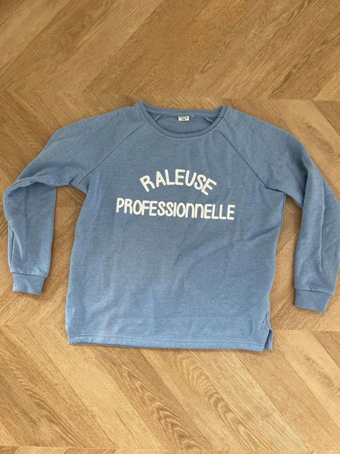 🌟 Pull neuf bleu et blanc avec inscription Raleuse - photo numéro 1