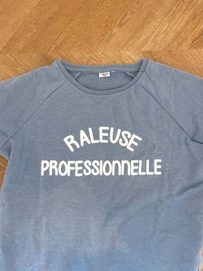 🌟 Pull neuf bleu et blanc avec inscription Raleuse - photo numéro 2
