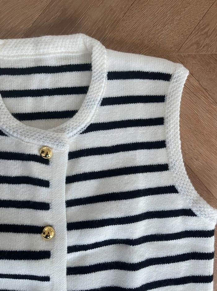 🌟 Gilet sans manches à rayures blanc avec boutons dorés - photo numéro 2