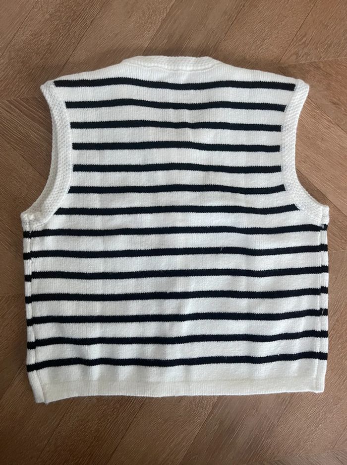 🌟 Gilet sans manches à rayures blanc avec boutons dorés - photo numéro 3