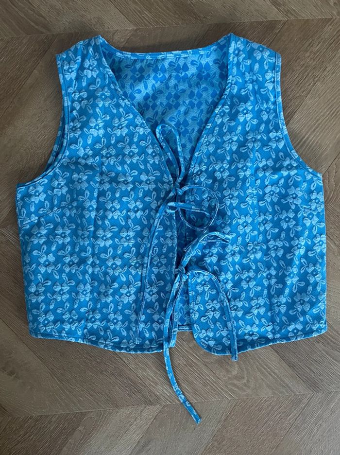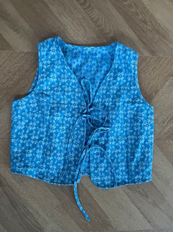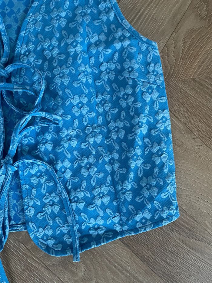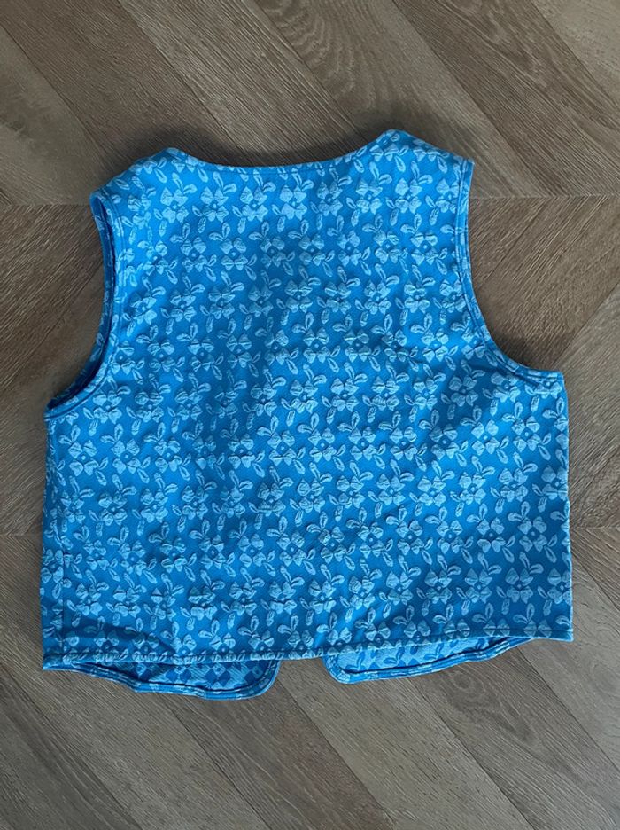 🌟 Haut sans manches, veste fine à fleurs bleu - photo numéro 4