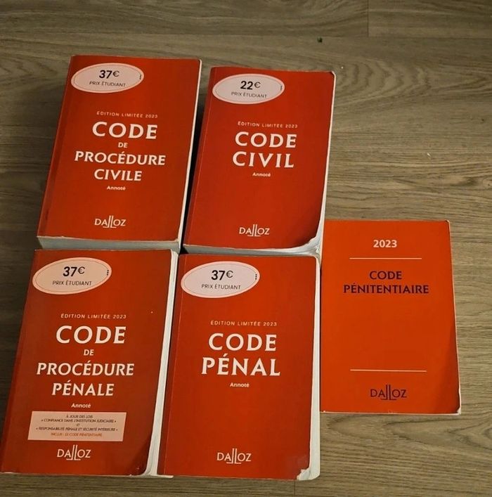 Code de procédure civile 2023 15 e Code de procédure pénale 15 e Code penal 15e Code civil 10e Code pénitentiaire 5e Le lot 50 e Valeur plus de environ 140 e