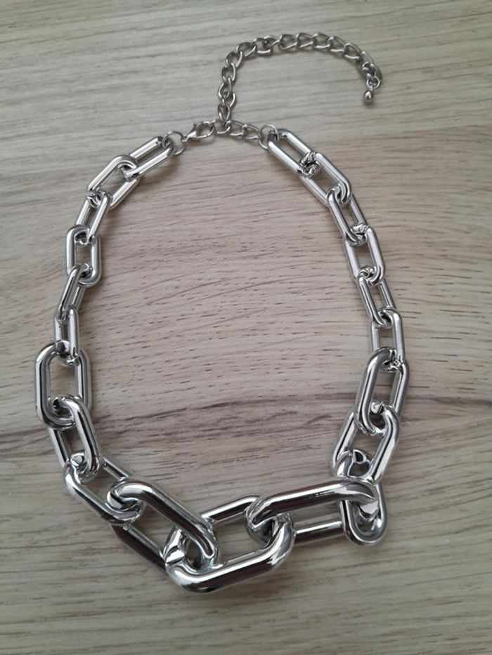 Collier chaîne, maillons, couleur argentée - photo numéro 1