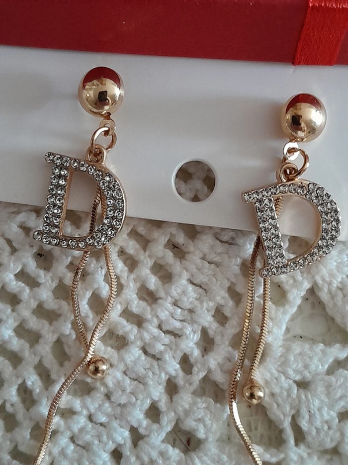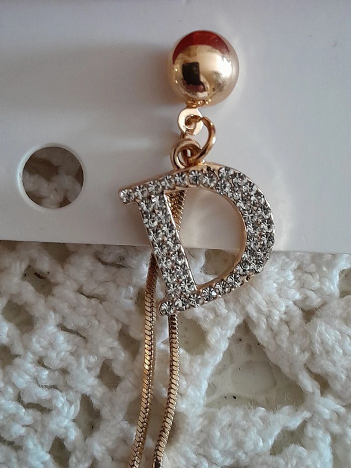 Boucles d'oreilles pendantes avec strass, dorées