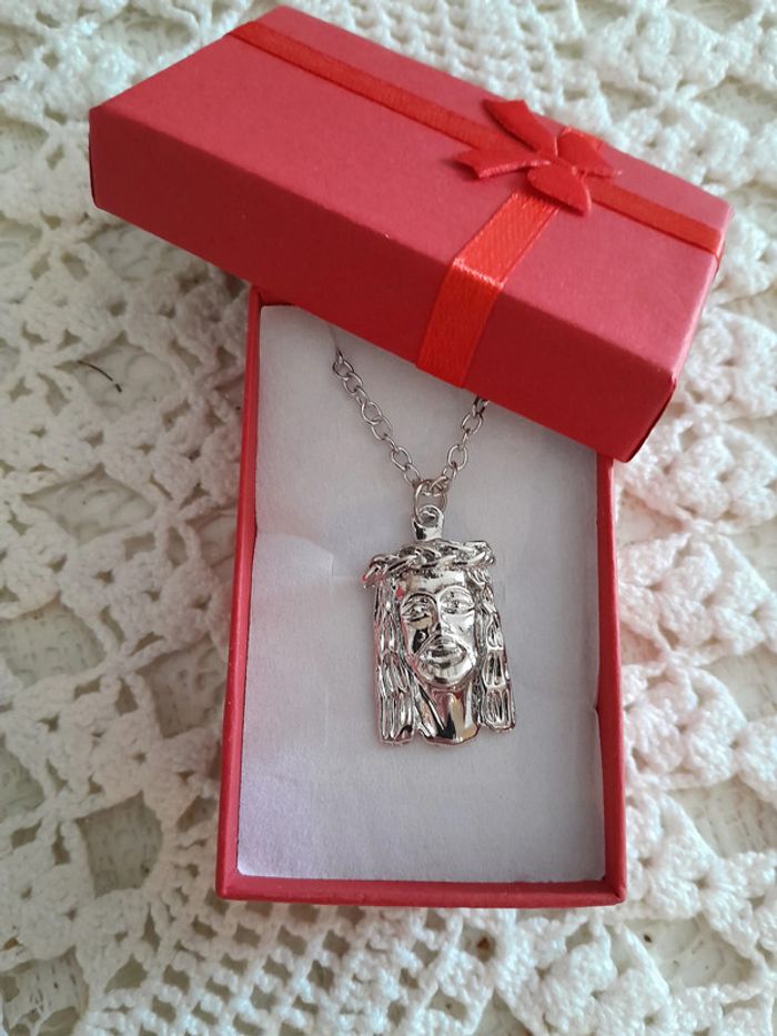 Collier avec pendentif Jésus, acier inoxydable couleur argenté la chaine mesure :50cm le pendentif mesure : haut.2,5cm X 2cm de largeur neuf