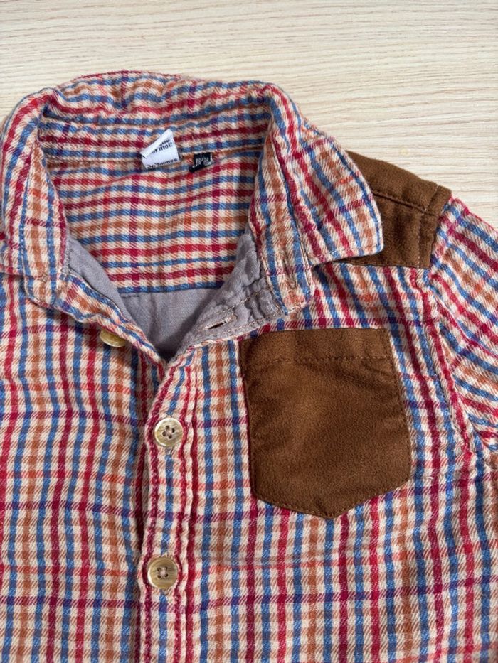 Chemise manches longues à carreaux Empiècement suédine Taille 18-24 mois