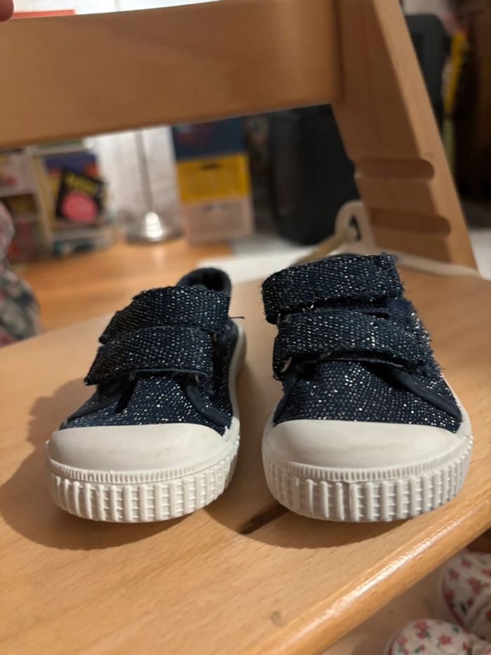 Baskets à scratch bleu pailleté Saxo Blues taille 20 - photo numéro 1