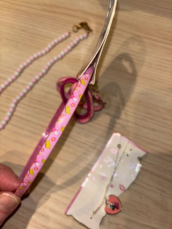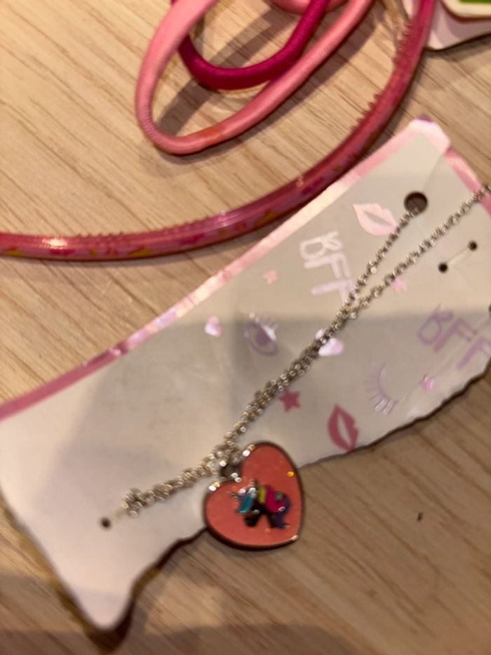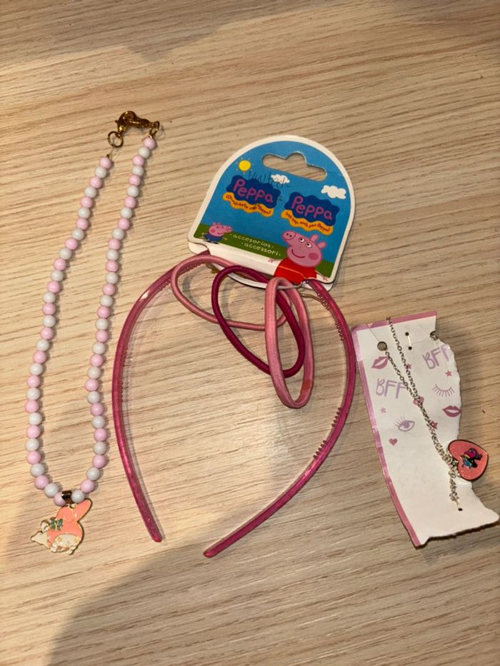 2 colliers (licorne et lapin my melody) et accessoires cheveux Peppa pig