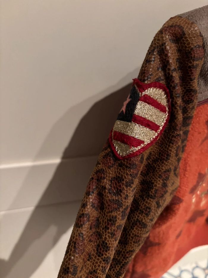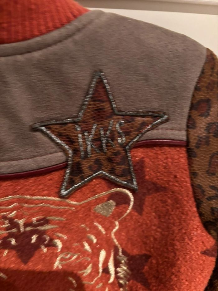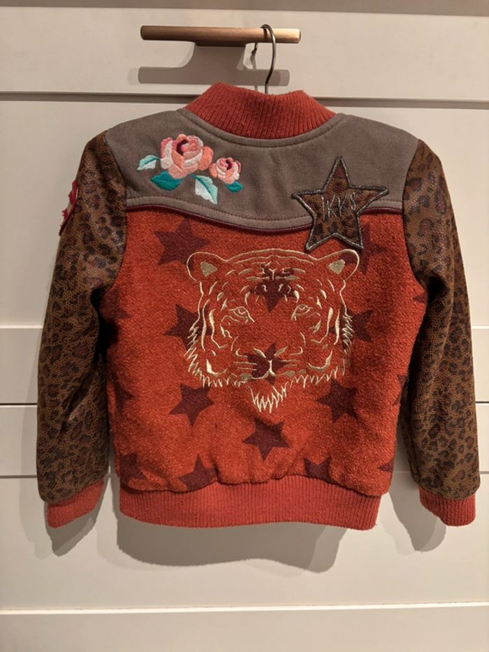 Taille 4 ans, en excellent état 20% laine Très original avec motif léopard, tigre et fleurs brodés