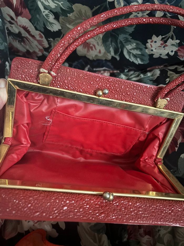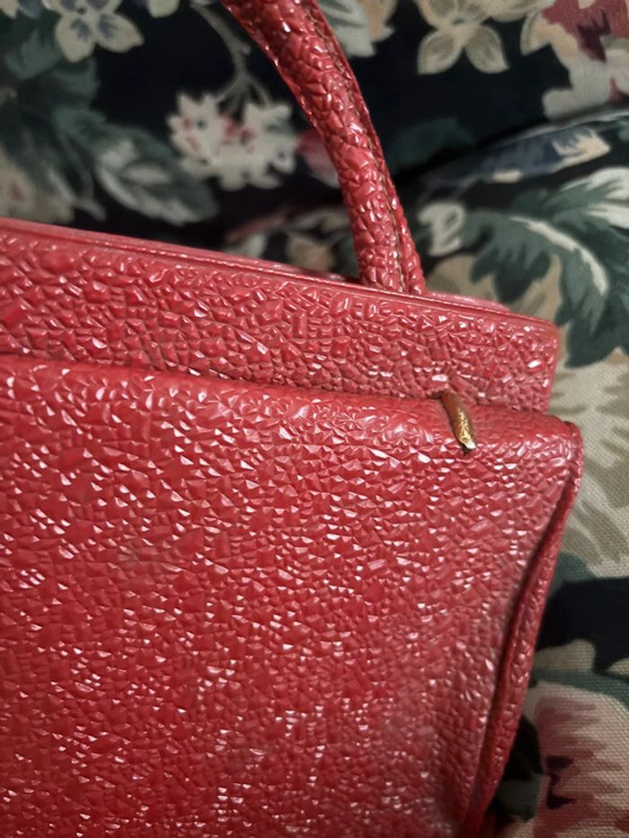 Petit sac à main vintage en plastique rouge bordeaux - photo numéro 1