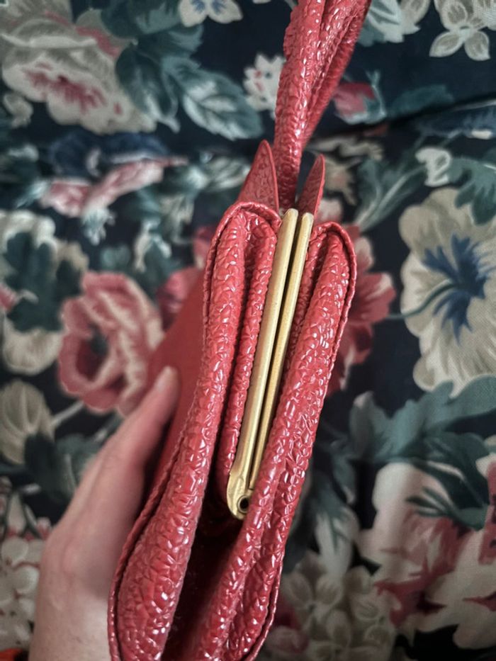 Petit sac à main vintage en plastique rouge bordeaux - photo numéro 6