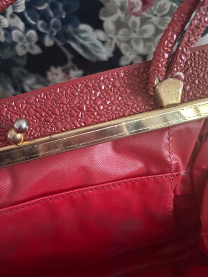 Petit sac à main vintage en plastique rouge bordeaux - photo numéro 7
