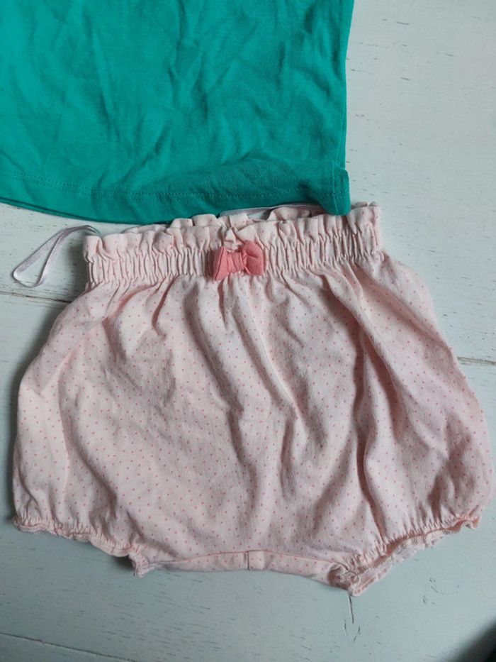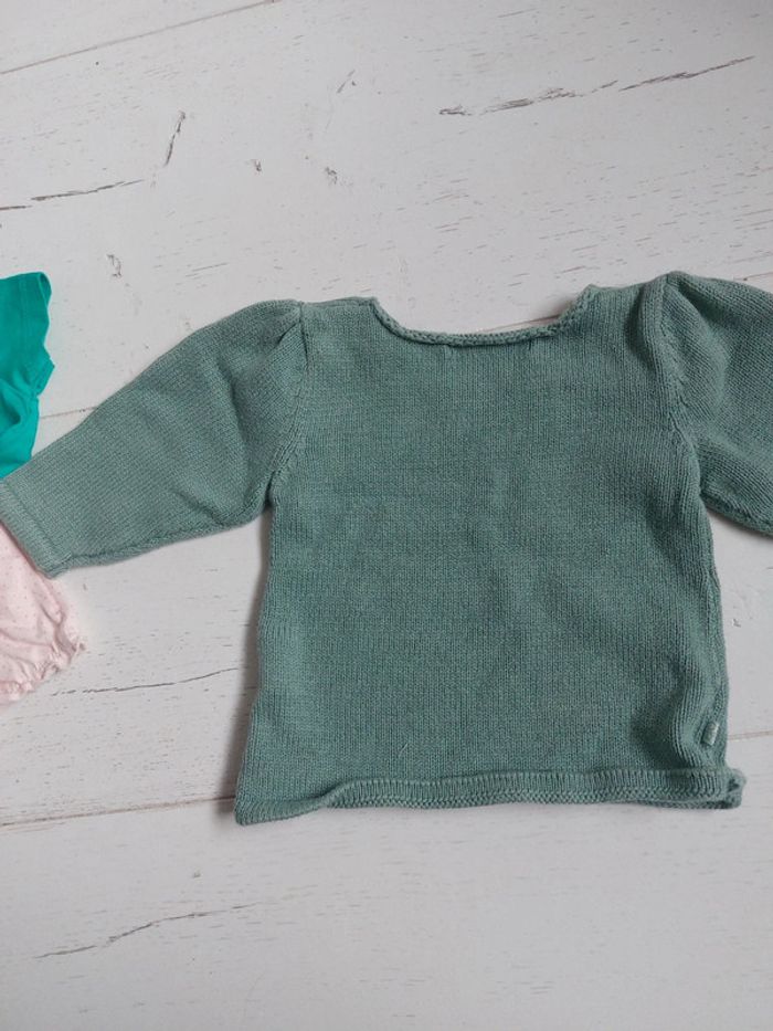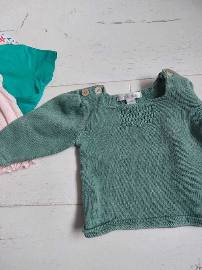 #victoireagrandi Lot de 3 vêtements, Taille 3 mois : 1 T-shirt Du Pareil Au Même 1 short bloomer à pois rose H&M 1 pull en coton Obaibi