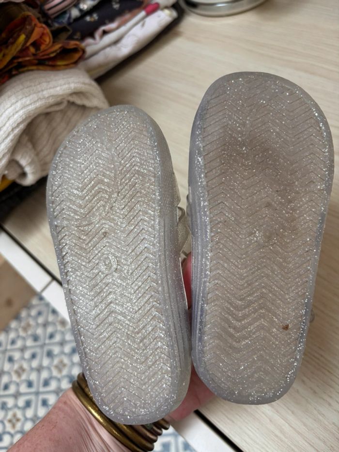 Sandales méduse en plastique transparent pailleté argent DPAM taille 26