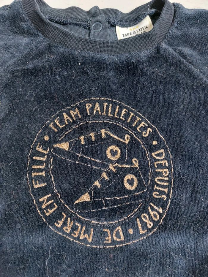#victoireagrandi Sweat tape a l'œil Team paillettes depuis 1987 de mère en fille Taille 12 mois