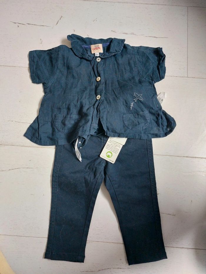#victoireagrandi Ensemble en taille 12 mois : Jean kiabi neuf avec étiquette Blouse vintage confetti