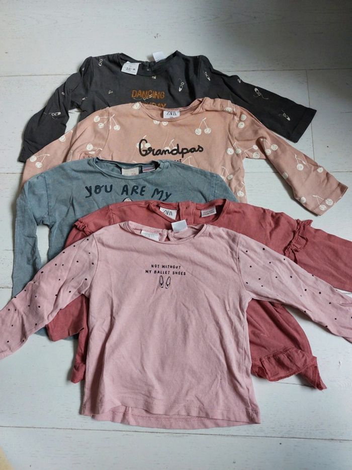 Lot de 5 t-shirts manches longues Zara Taille 9-12 mois - photo numéro 1
