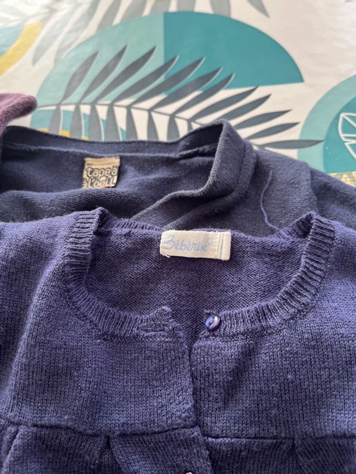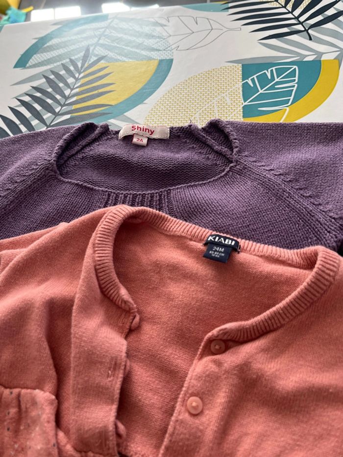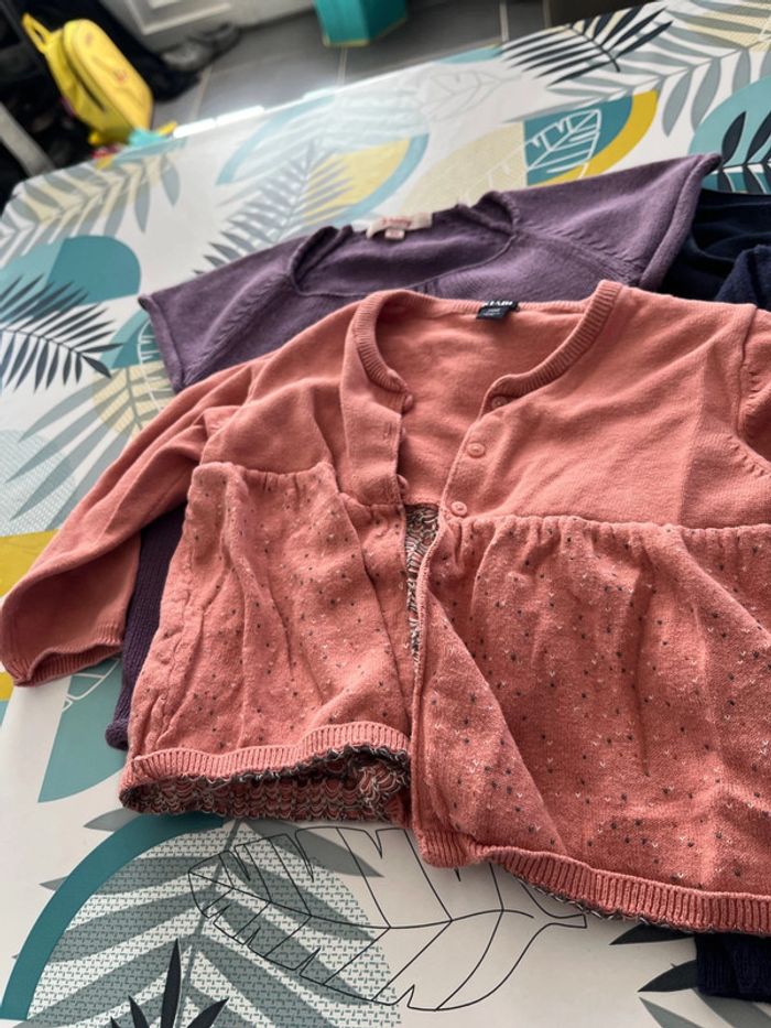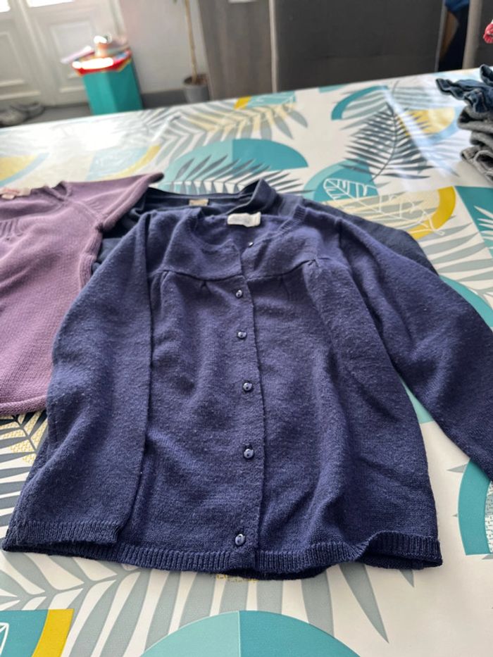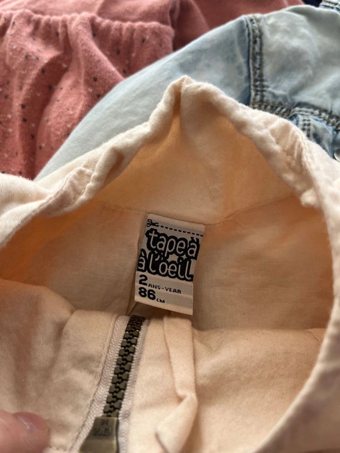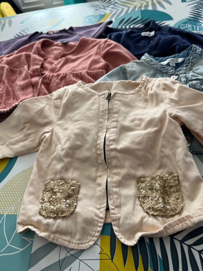 Lot gilets et veste sont en bon état il y a un boléro tape à l’œil un pull sans manches marche shiny un gilet bébé rêve est boulocher un gilet kiabi une veste en jeans kanz et une veste râpé à l’œil à une petite tache à la manche voir photo taille 2 ans #elo6126fille2ans