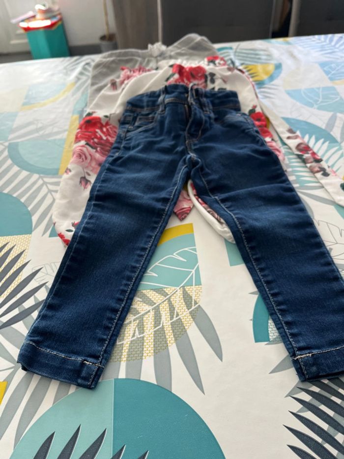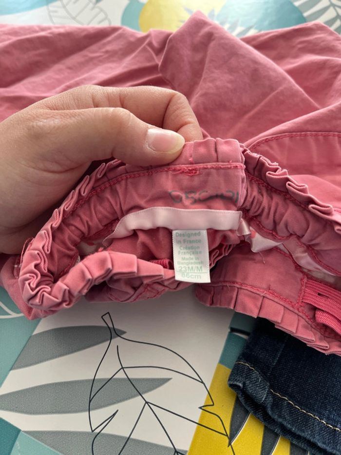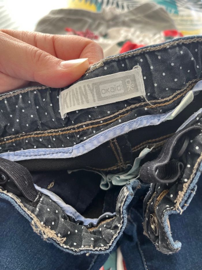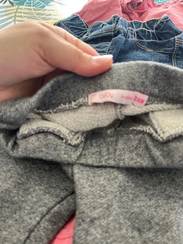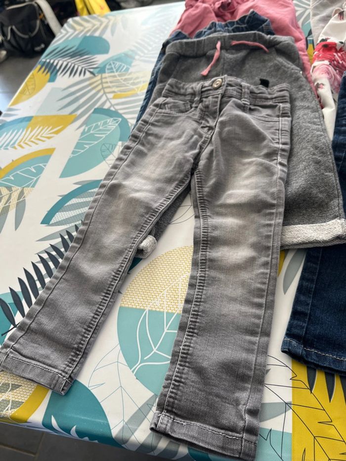Lot de 8 pantalons filles un jeans rose marque obaibi réglable à la taille 2 jeans kiabi non réglable à la taille un jeans okaidi réglable à la taille un jeans tape à l’œil à 2 petites taches je n’ai pas essayer de le détacher un pantalon pailleté gemo un pantalon blanc avec 3/4 taches qui se voient peu noté taille 100 cm mais taille très petit et un jogging la redoute à un peu perdu de sa couleur taille 23/24 mois #elo6126fille2ans