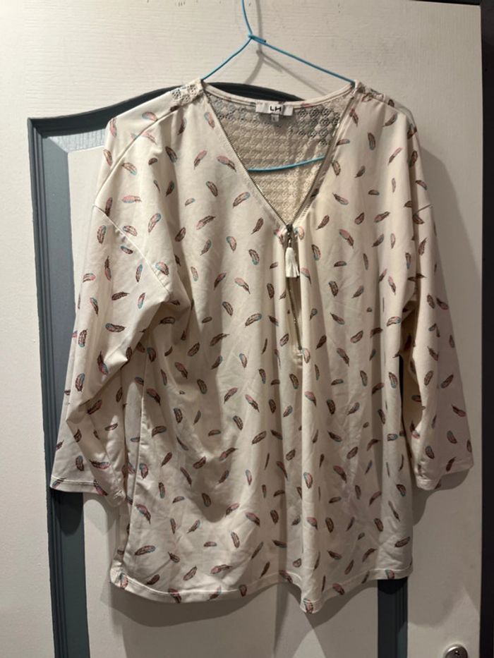 Haut manches 1/2 en tbe très peu porté correspond à un 46 malgré la taille L noté car taille le L des grandes tailles chez la halle aisselles à aisselles 56 cm #elo6126femmetaille46