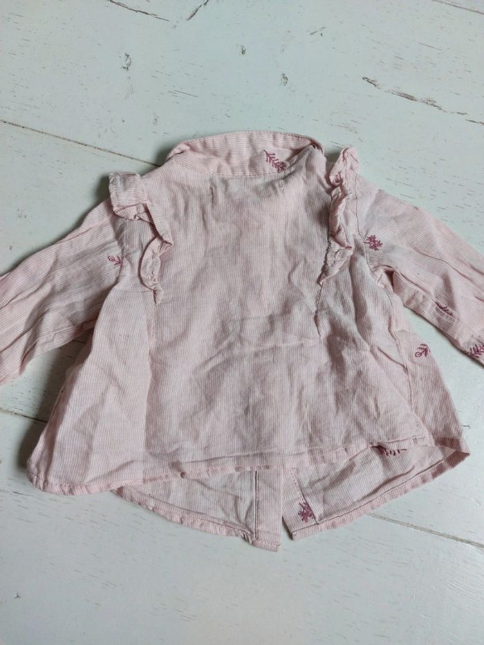 #victoireagrandi Chemise légère Zara vieux rose avec broderie et volant Taille 3-6 mois