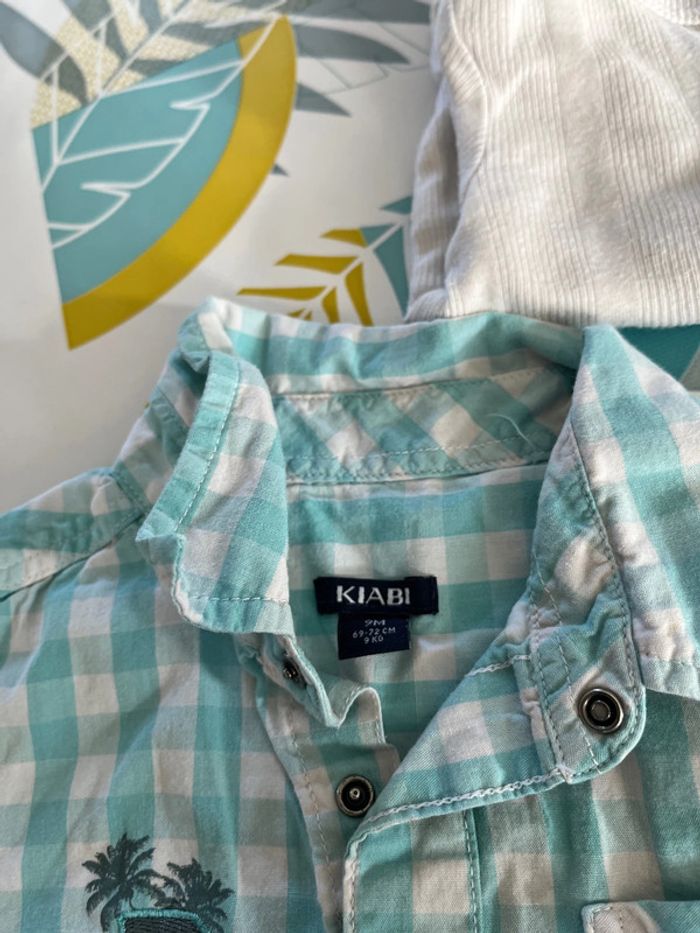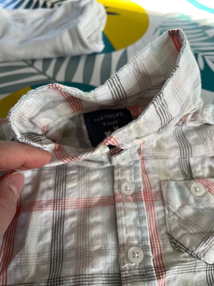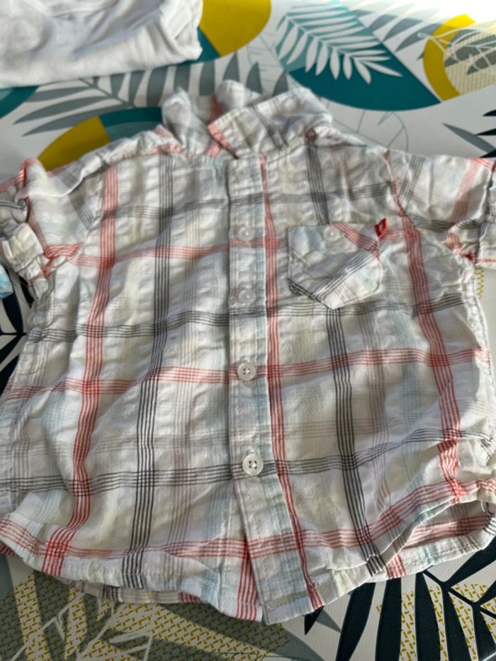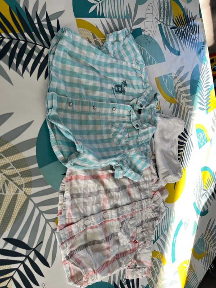 Lot de 2 chemises manches courtes sont en bon état et j’offre en cadeau un bodie manches courtes taille 9 mois