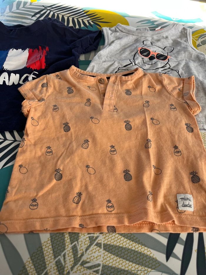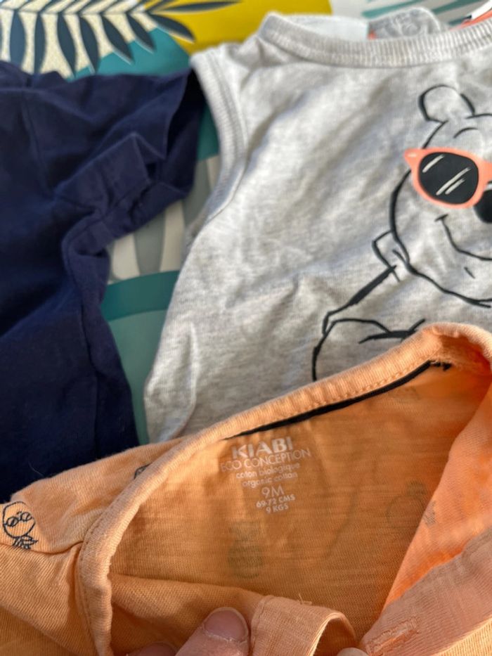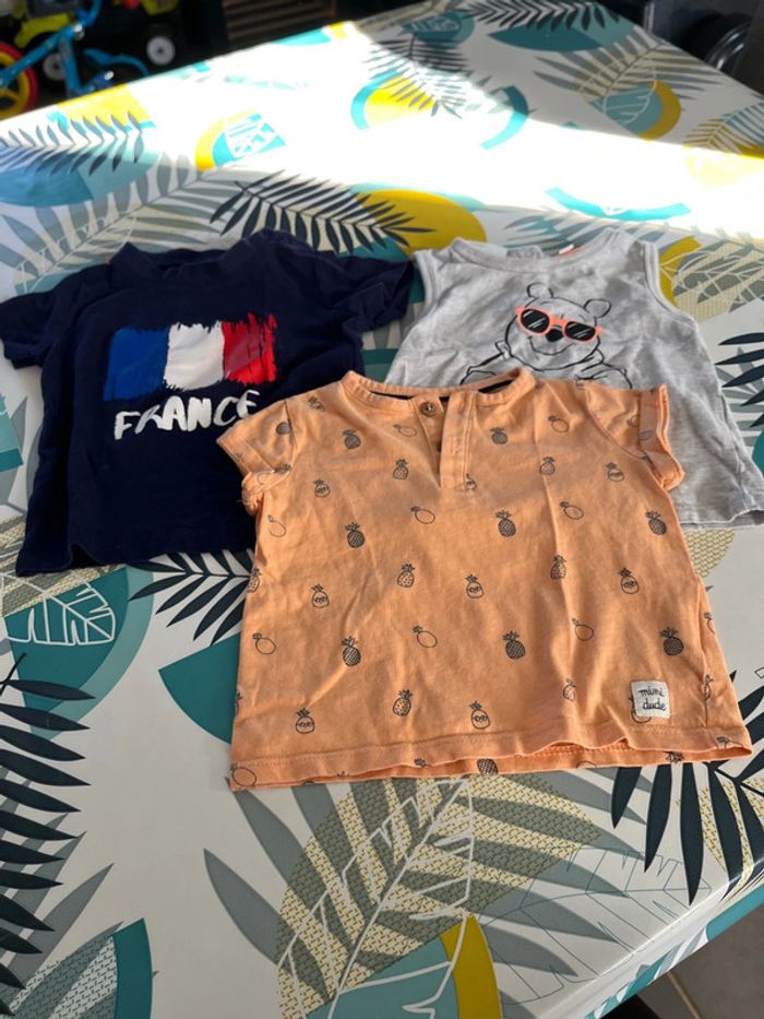 Lot de 3 hauts 9 mois sont en bon et tbe le bleu marine a le rouge qui a légèrement déteint voir photo